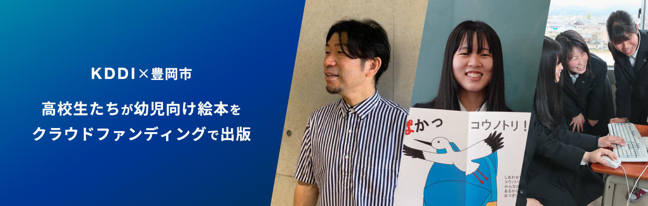 地域の子どもたちに、豊岡の魅力を伝える絵本を届けたい。高校生たちの思いをのせた絵本の出版プロジェクトが立ち上がり、クラウドファンディング企画として始動。KDDIは、社員が思い入れのある地域を応援するための社内コミュニティ「地域サポーター」のメンバーとともに、豊岡市と連携のもとクラウドファンディング企画の具体化、実施を支援しました。今回は、クラウドファンディングに挑戦した高校生の河見さんと、活動を側面から支援された豊岡市の沖中さまにお話を伺いました。