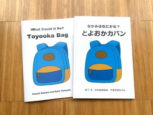 出版を目指す絵本『なかみはなにかな? とよおかカバン』。地元豊岡市、旧一市五町 (豊岡市・城崎町・竹野町・日高町・出石町・但東町) の名物や名所が、豊岡の名産品「とよおかカバン」の中から次々に出てくる。「絵本を作ることで、自分の住んでいる町以外の良さを再確認できました」と河見さん。