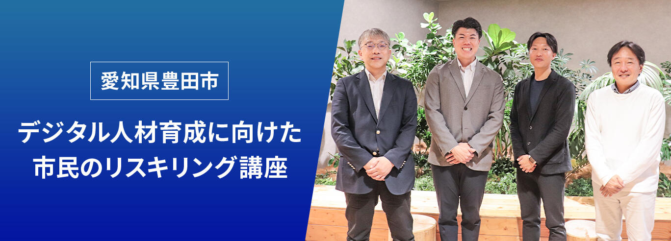 さらなる人材不足や業務のデジタル化が進んでいく昨今、愛知県豊田市では、今後役立つデジタルスキルの習得意欲のある求職者向けに、2023年12月からの3カ月間、『「オンライン×みんな」で学ぶデジタルスキルアッププログラム』を実施した。KDDI株式会社が本案件を受託し、スクーと連携してプログラム内容の構築から研修の実施までを手がけ、豊田市が目指す求職者のデジタルスキルの向上に向けた持続可能な学びを、学習者への伴走支援によって実現した。その取り組みについて、豊田市、スクー、KDDI 3社の担当者にお話を伺った。