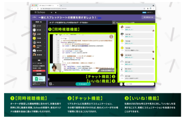 12月11日からはオンライン学習がスタートし、その講義のほとんどで「集合オンライン研修」が導入された。これは、講義を視聴する時刻をあらかじめ決めておき、参加した受講者がチャット機能を通じて意見や感想を入力し、共有できるというものだ。