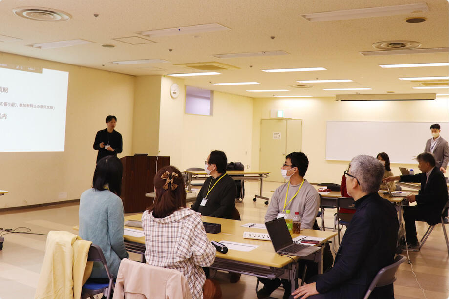 豊田市 川瀬様:各プログラムの受講のほか、これから一緒に学ぶ受講者同士の交流のため、対面実地でのキックオフミーティングを行いました。当日は、思っていた以上に受講者同士の間で交流が生まれ、とても有意義な受講者間での学びの場となりました。キックオフでの雰囲気や活発な受講中での様子を踏まえ、受講後の振り返りとして、受講者とメンターが学びの成果を伝え合う場としての「ミートアップ」を実地とオンラインのハイブリッドで実施することとしました。