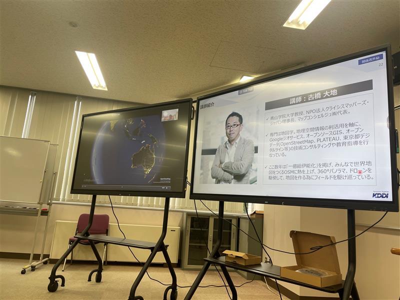 KDDI 利岡:東京都市長会では、「多摩地域における行政のデジタル化の取組」を推進しており、令和6年度はテーマの1つとして「防災DX実証事業」があります。市長会では自治体の担当者向けに、今後のツール導入の参考になるよう、さまざまな防災DXツールを体験できるトライアル利用や、防災に関わる研修・講義を実施しています。その研修の一つとして、KDDIが開発した「防災マップボード」を活用するワークショップの企画・運営支援をさせていただきました。