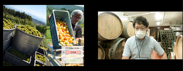 カンマッセいいづなの廣田様は、「量は青森にかなわないが、飯綱のりんごは美味い。日本一のりんごの町をつくりたい」と冒頭より熱が入る。「今回みなさんに提供するのは、『ふじ』と『サンふじ』の2種類のりんごの木です。『サンふじ』はその名のとおり、太陽の光をいっぱい浴びて熟したりんごのこと。収穫ぎりぎりまでたっぷりお日様を浴びた美味しいりんごをお届けしたい。りんごの木のオーナー制度が、シードルになって皆さんのお手元に届く、こういったストーリー性をもった取り組みは大変ありがたいことです」とのお話に、参加者からは「りんごが食べたくなりました」「楽しみです」とたくさんのチャットが会場に寄せられました。