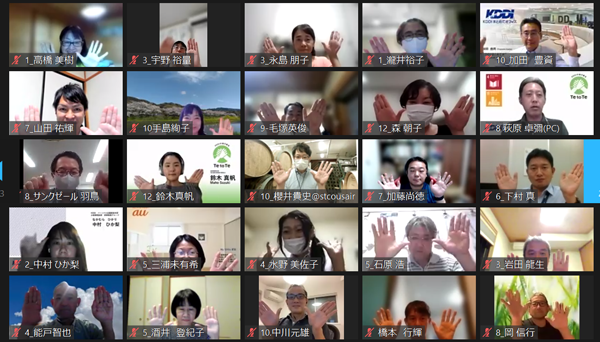 当日は、KDDI長野県サポーターを中心に、67名がオンランで参加。プログラムは2部制で、第1部では、全体概要をKDDI事務局が紹介、つづいてカンマッセいいづな様とサンクゼール様より、町おこしの様々な取り組みや思いをお話頂きました。第2部では、少人数のワークショップを開催し活発な議論が交わされました。