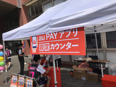 購入前に必要な「アプリダウンロード」→「au ID取得とau PAY利用開始」→「金額チャージ」に関しては事前設定ガイドと電話の問合せセンターを設置、さらには会場内に設定カウンターを設け、校内の随所にポスターを掲示、さらには生徒会有志が「歩くau PAYマニュアル」として会場内を巡回するなど、初めてご利用する方でもスムーズにご利用いただけるよう、返金対応も含め、手厚いサポートを実施しました。