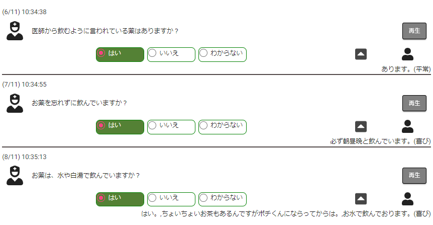 また高知県日高村役場の健康福祉課職員にも、MICSUSと高齢者の対話結果確認をご確認いただきました。ケアマネジャーだけでなくご家族に見ていただく機能 (高齢者見守り機能) や、パーソナライズ情報 (独居・家族構成等) に応じた対話機能等、社会実装に向けて実用的な機能改善について議論を実施しました。