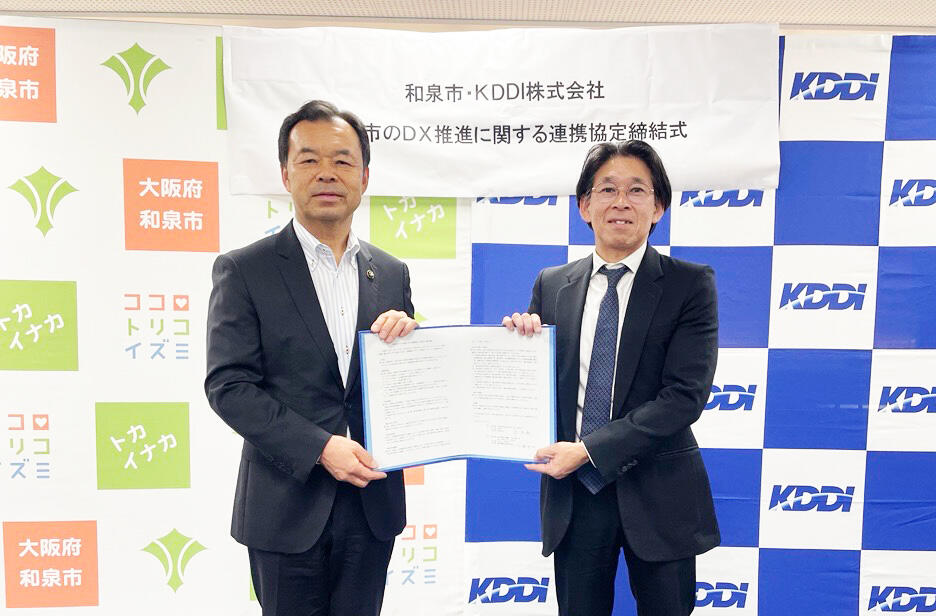 KDDIは2025年10月27日、和泉市のDX(デジタルトランスフォーメーション)推進を目的に、大阪府和泉市(市長:辻 宏康、以下 和泉市)と「DX推進に係る連携協力に関する協定」を締結しました。両者は本協定を通じ、デジタルによる市民生活の質の向上と地域課題の解決などを推進していきます。