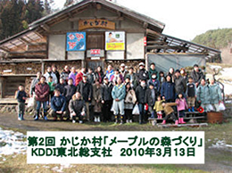 KDDI東北総支社では、3月13日 (土) に宮城県が取り組む「みやぎの里山林協働再生支援事業」に登録されている、宮城県登米市東和町「かじか村」において、幼木の移植作業を実施しました。
