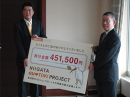 KDDIは、新潟県内のauショップ全30店舗で販売されたau携帯電話の売り上げの一部を「新潟県トキ保護募金」に寄付する「au Loves トキ」プロジェクトを2010年8月7日 (土) ~2010年8月31日 (火) まで実施し、総額451,500円の寄付金を、新潟県に寄付しました。