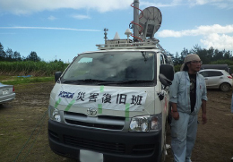 運用部門では、復旧作業の指示を出すと共に福岡、沖縄、高松、広島、名古屋から総勢29名の方が現地入りし、4台の移動基地局を活用して通信回線の確保に努めると共に、基地局などの復旧作業に努めました。また、非常時の通信手段として有効な衛星携帯電話イリジウム電話端末を提供しました。