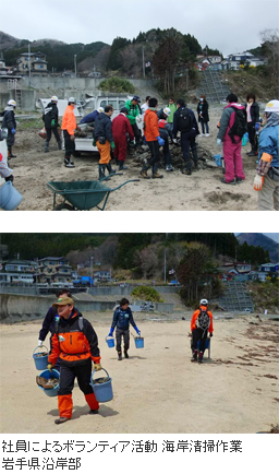 遊ぶ場所が減ってしまった子どもたちに、元気に走り回れる場を提供するため、海開きシーズンを前にした海岸清掃のお手伝いを行いました。また、被災された方から当時の状況を直接伺う機会や被災地域の視察、社員同士の意見交換なども行い、参加した社員からは「自らが主体的に考え行動することが大切だ」、「現地で感じたことを多くの人に伝えたい」、「報道から得る多くの情報よりも自分の中に深く根付く」などの声が寄せられています。