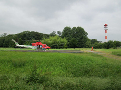 当ヘリポートは、周囲に住宅がないため、近隣住民の方に騒音、強風によるご迷惑がかからないうえ、上空より視認し易い点が評価をされ、「栃木県ドクターヘリ」の緊急搬送時の離着陸場所としても提供しています。