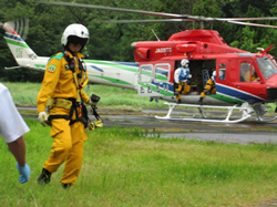 「栃木県防災ヘリ おおるり号」と「栃木県小山市消防本部」の訓練の様子