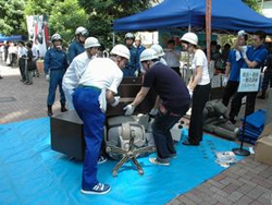 この催しは、9月1日の「防災の日」に先立ち、「首都直下地震に備えて 高めよう自主防災力を」をテーマに、東日本大震災の経験から事業所・地域の防災行動力の向上を目指して行われたもので、企業の社員や近隣の住民に参加を呼びかけ、約900人が集まりました。