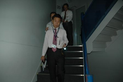 参加した社員からは、「暗闇の階段を下りることは想像した以上に大変であった」「非難時の混乱を避けるためのルール作りが大切だと改めて感じた」などの声があがりました。