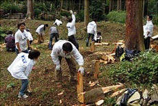 当日は、関西地区のKDDIグループ社員とその家族46名を含む計68名が参加、間伐した椎の木で薪づくりを行いました。130束ほどできた薪は、大山崎町の保育園、社会福祉施設で、冬季用の燃料として利用いただく予定です。