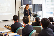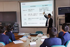 今回の授業は、四ツ葉学園中等教育学校 (伊勢崎市)、球陽高等学校 (沖縄県) のそれぞれから要請を受け、「企業で働くこと」と「学校生活」との関係を、社員との対話を通して行いました。参加した学生たちは、初めての企業人との交流に、興味深そうに耳を傾けていました。