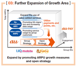 We are promoting strategies centered on engagement with the aim of maximizing Group IDs, engagement, and total ARPU, which comprise the axis of KDDI's sustainable growth.