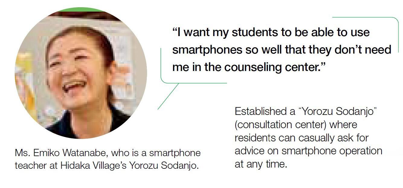 KDDI is working with Hidaka-mura in Kochi Prefecture on "Digitizing the Entire Village Project" which aims to improve the quality of public services and revitalize local communication using smartphones.