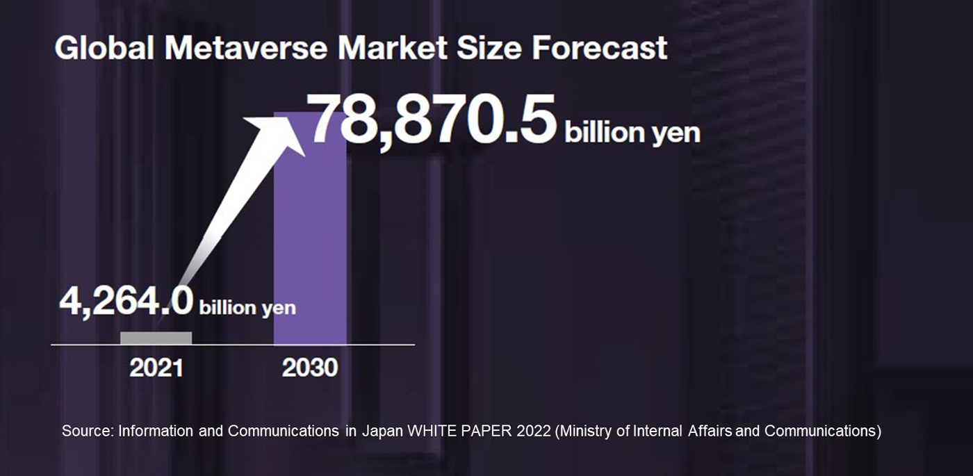 The metaverse is a 3D virtual space service on the Internet that is experienced by avatars. Its market size is projected to reach 78,870.5 billion yen by 2030.