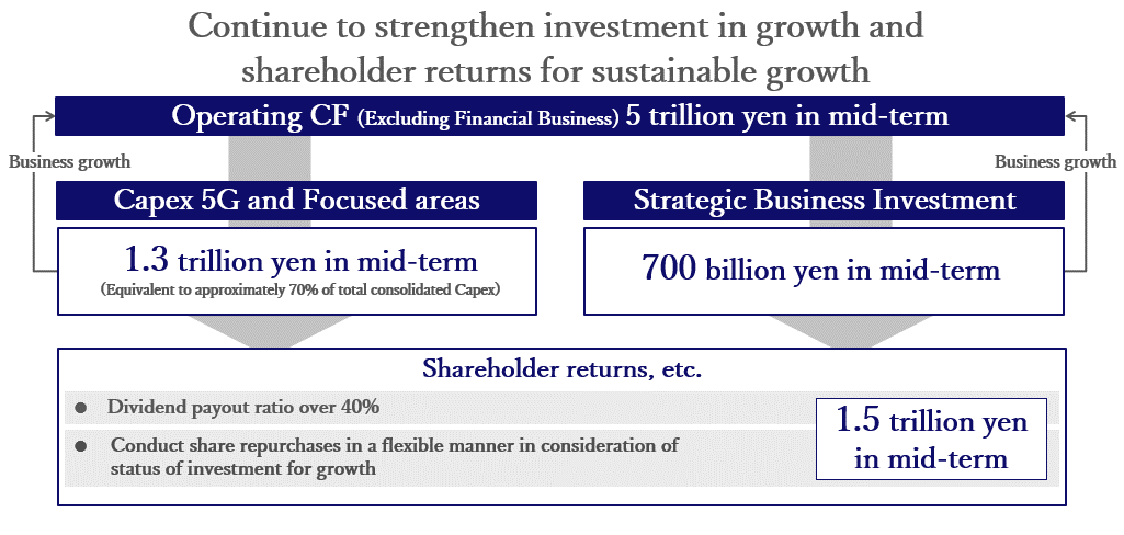 For cash allocation, we strive to balance growth investments with shareholder returns. Excluding financial business, we aim to generate approximately 3 trillion yen in operating CF over the two fiscal years from FY2025.3 to FY2026.3. This cash flow will be allocated to approximately 1.3 trillion yen in CAPEX and around 200 billion yen [5] in strategic business investments.
