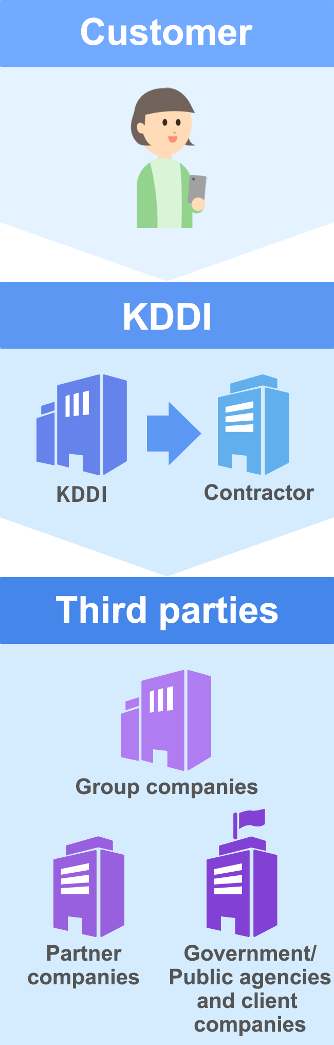 - KDDI takes a range of safety control measures, including the establishment of in-house framework, to protect our customers' valuable data and privacy.