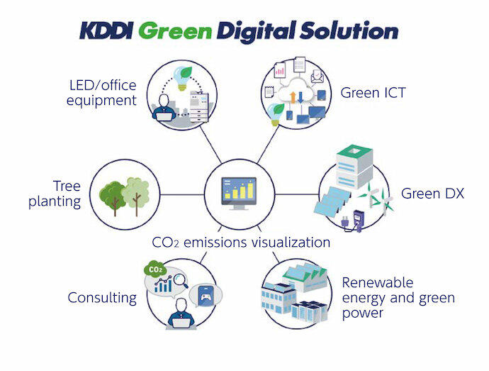 KDDI is promoting its medium- and long-term environmental conservation plan, the “KDDI GREEN PLAN.”