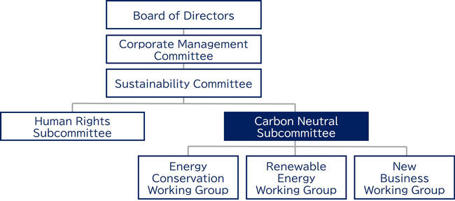 Sustainability Committee chaired by the President monitors the progress of the targets to contribute to realize decarbonized society. Specifically, the Carbon Neutral Subcommittee, under the supervision of Sustainability Committee, will monitor semi-annually the risk factors for not meeting the annual target and the opportunity factors in case the annual target is achieved. The results of the Carbon Neutral Subcommittee's monitoring are reported to the Sustainability Committee as climate-related risks and opportunities, and an assessment of materiality is made. The results of the monitoring and assessment of targets and measures related to climate-related issues will also be reported. The Sustainability Committee held semi-annually. In the first half of the year, the committee will "confirm the achievement of the previous year's targets" and "analyze factors and confirm countermeasures if targets were not achieved"; in the second half, the committee will "confirm the progress of the current year's targets" and "set targets for the next year". In addition, the Board of Directors receives quarterly reports from the Sustainability Committee on Climate Change and oversees and directs the implementation of measures to address important issues and initiatives.