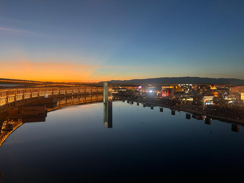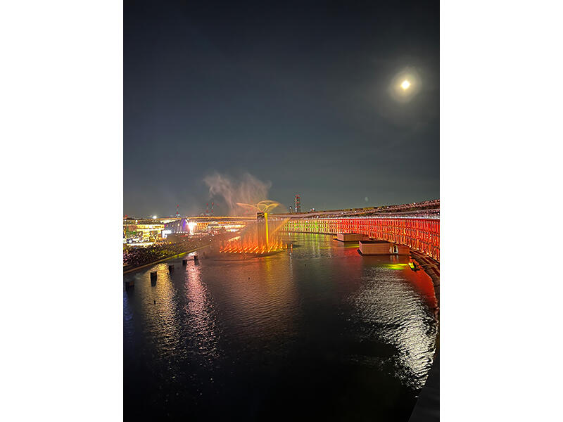 会場中心部にあるウォータープラザでは日の入り後美しい空が水面に反射してとても綺麗に見えます。