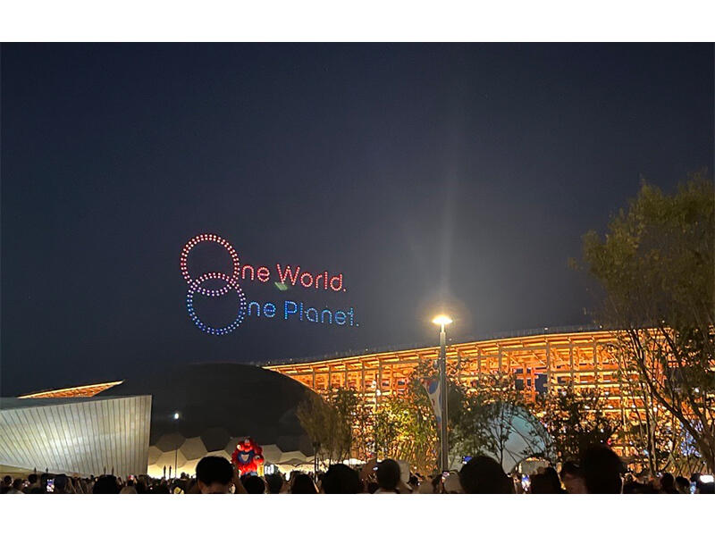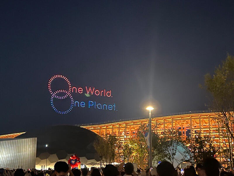 会期中、万博会場の夜空を彩ったと音、テクノロジーのおりなすスペクタクルショー「One World, One Planet.」