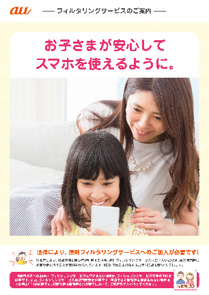 未成年者がauスマートフォン/auケータイをご契約・ご利用いただく際、販売店において、ご利用者が未成年であるか確認をさせていただきます。ご利用者が未成年である場合は、「あんしんフィルター for au」などのフィルタリングサービスをご案内し、必要に応じて設定のサポートをさせていただきます。