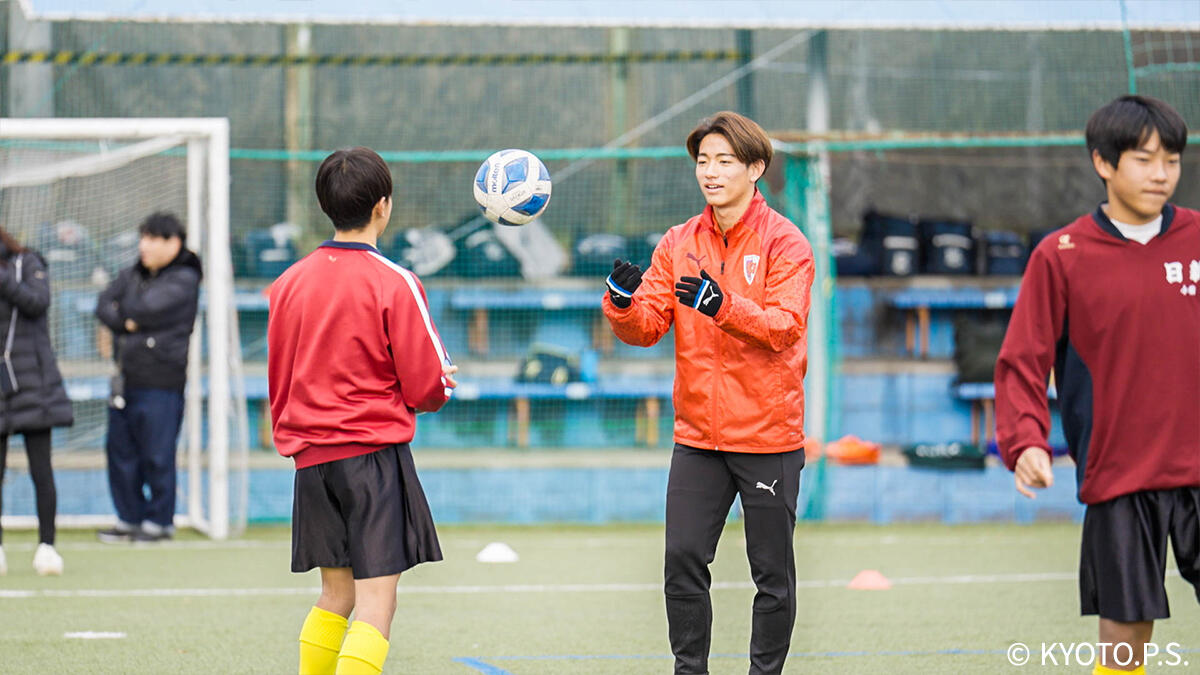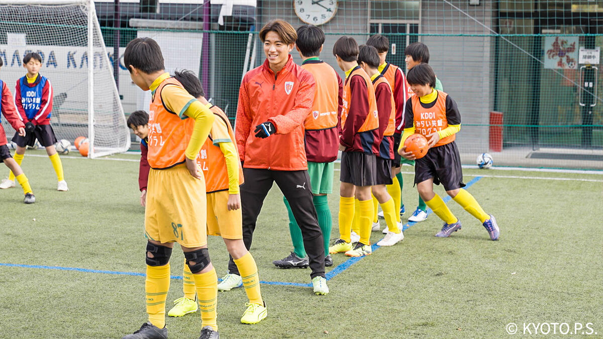 12月14日(土)サンガタウン城陽で、京都サンガF.C.の平賀選手やコーチが支援先の子どもたちに対面でトレーニングを行いました。