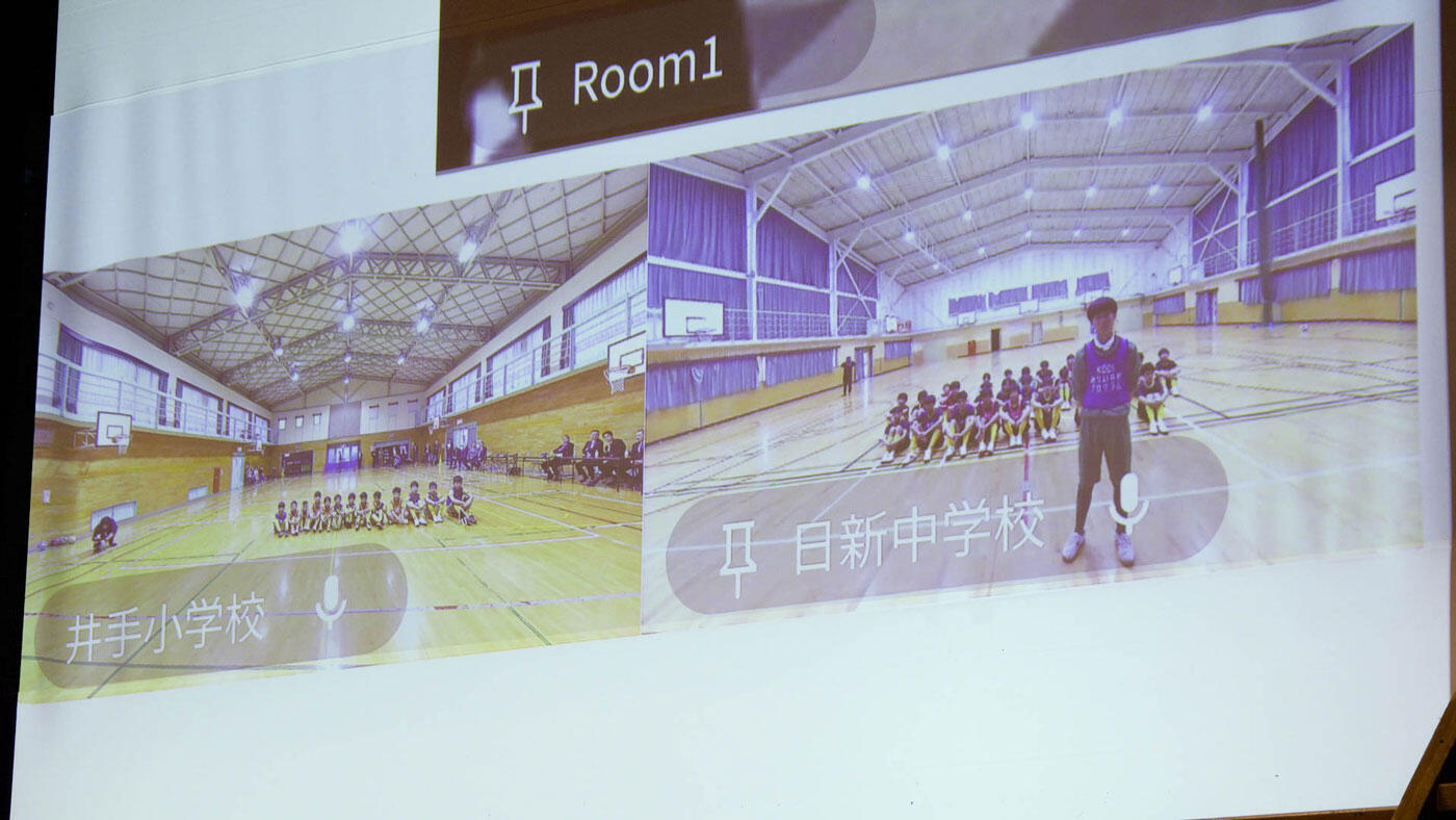 当日は、京都サンガF.C.の練習拠点であるサンガタウン城陽に、マルコ・トゥーリオ選手と藤田(ふじた)聡(さとし)コーチがスタンバイ。同じタイミングで、京都府北部の福知山市立日新中学校サッカー部と南部の綴喜郡井手町の山吹サッカークラブの小中学生も体育館で憧れの選手とつながる瞬間を待ちます。