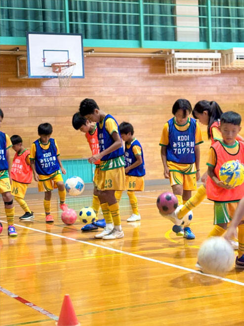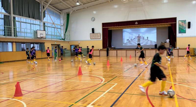 ドリブルや5対5のミニゲームでは、画面越しとは思えないほど細かなプレーに対してのアドバイスもあり、目の前に選手やコーチがいるような臨場感に子どもたちは感激していました!