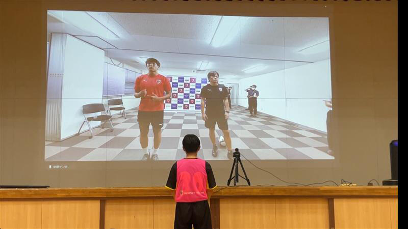 9月17日(水)、京都サンガF.C.の永田(ながた)倖大(こうだい)選手と藤田(ふじた)聡(さとし)ジュニア育成部コーチが、今回も京都府内の小学校と中学校を遠隔でつなぎ、計40人の子どもたちに2回目の遠隔サッカーコーチングを行いました!