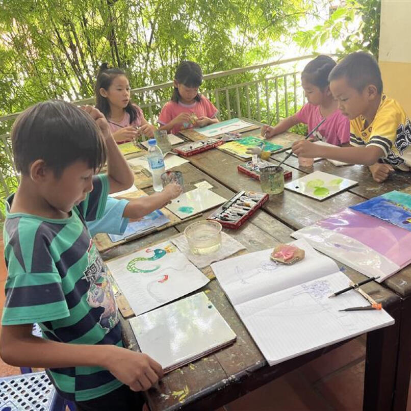 KDDI財団が支援するカンボジアの無料美術スクール「小さな美術スクール」では、多くの子どもたちが絵を描く楽しさを通じて豊かな感性を育んでいます。生徒たちの作品は、KDDI財団主催「チャリティーコンサートクラシック」のポスターなど、様々な印刷物に採用されています。