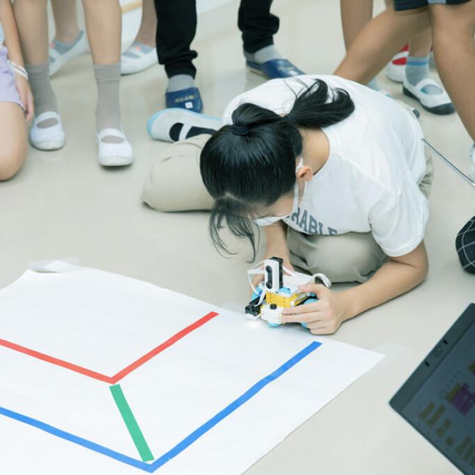 教育の本質ロボットには床面の色を判別できる「カラーセンサー」と、ロボットが障害物を感知できる「超音波センサー」も搭載できます。こうした操作を学んだあと、2日間の授業の締めくくりとして、ロボットが決められたコースを走るプログラムを作成し、チームごとにタイムを競う発表会を行います。