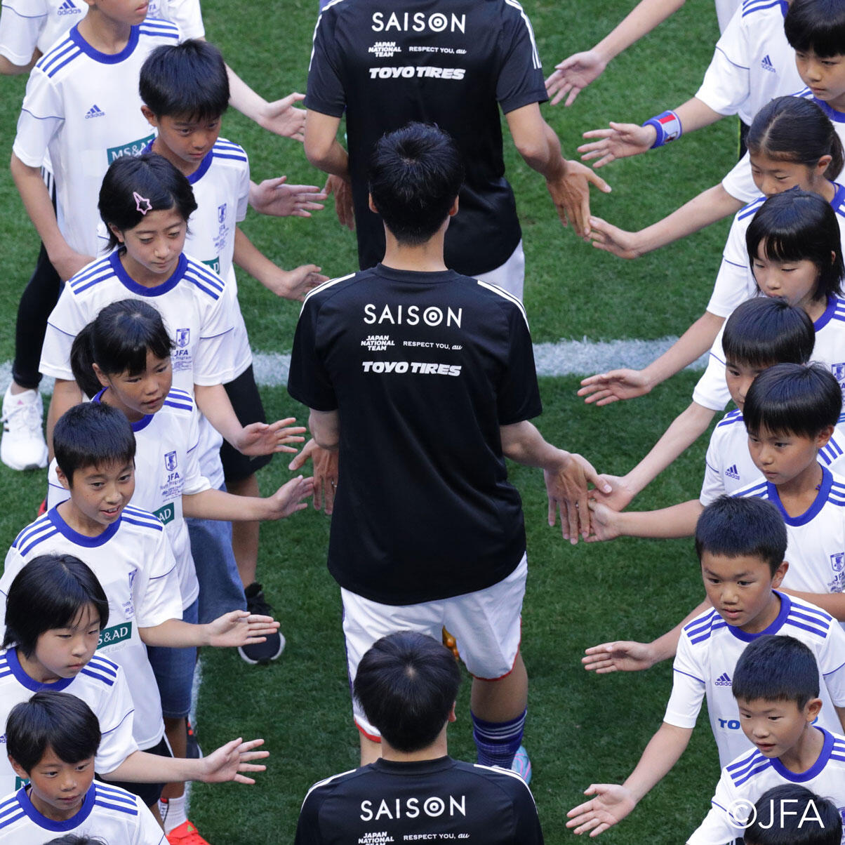 KDDIのブランド体験施設であるGINZA 456に子どもたちが集まり、サッカー男子日本代表の森保監督や元日本代表の選手とともに、未来のサッカーを考えました。集まった子どもたちの声は、日本サッカーの発展のためJFAに届けました。
