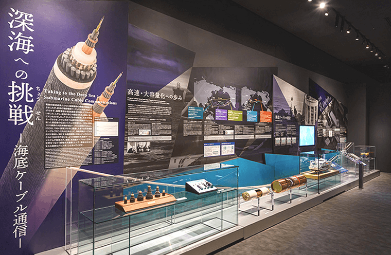 「THEATER-I」のシアターを正面に左手にある出口から出ると「日本の国際通信」の展示をご覧いただけます。