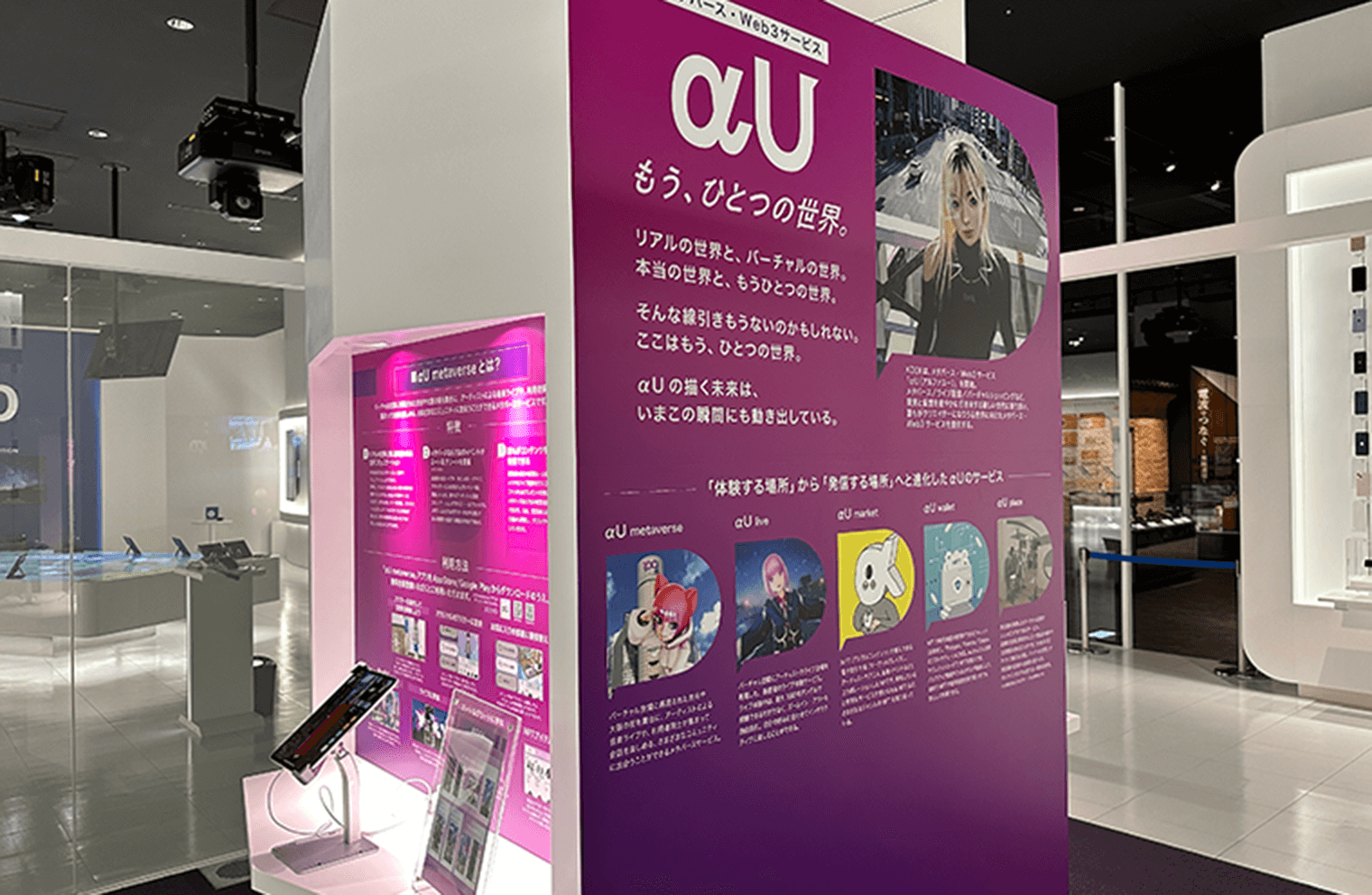 メタバース・Web3サービスプラットフォーム「αU」。現実と仮想を軽やかに行き来する新しい世代に寄り添い、誰もがクリエイターになりうる世界に向けたサービスです。リアルとバーチャルがつながる「もう、ひとつの世界」を体験してください。