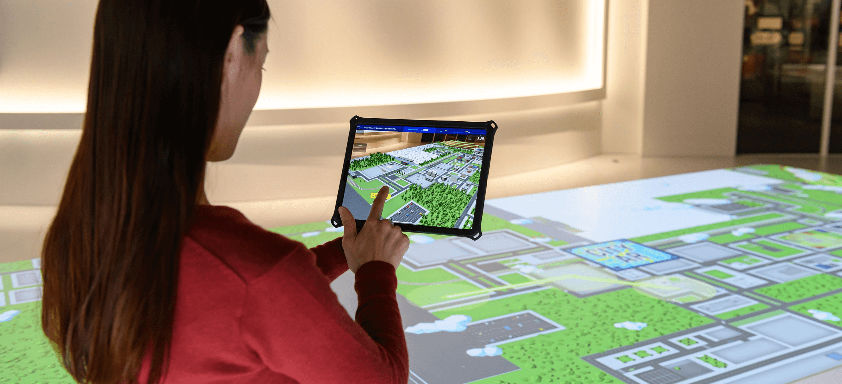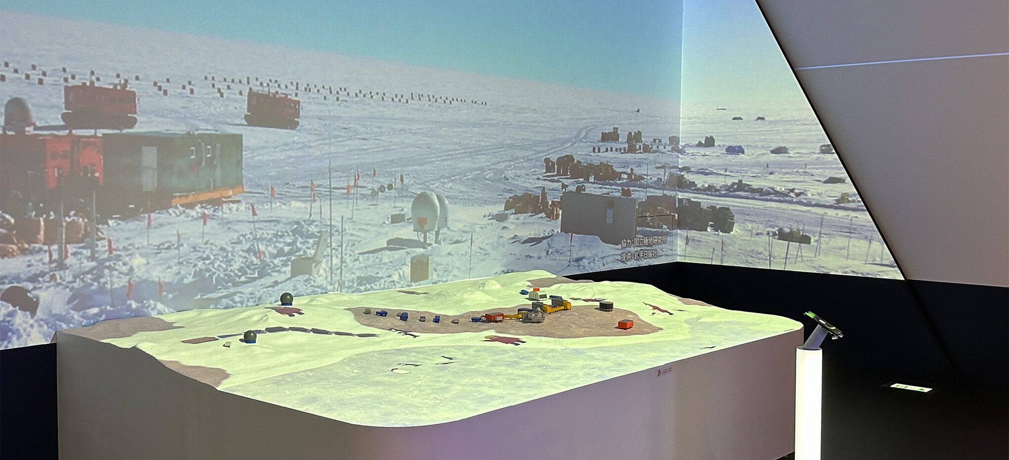 壁面の大スクリーンとジオラマ上に映し出すARで、南極観測の世界と南極の神秘的な自然をご紹介します。ジオラマで再現された昭和基地ではARの隊員たちが活動中!奮闘する様子をご覧ください。