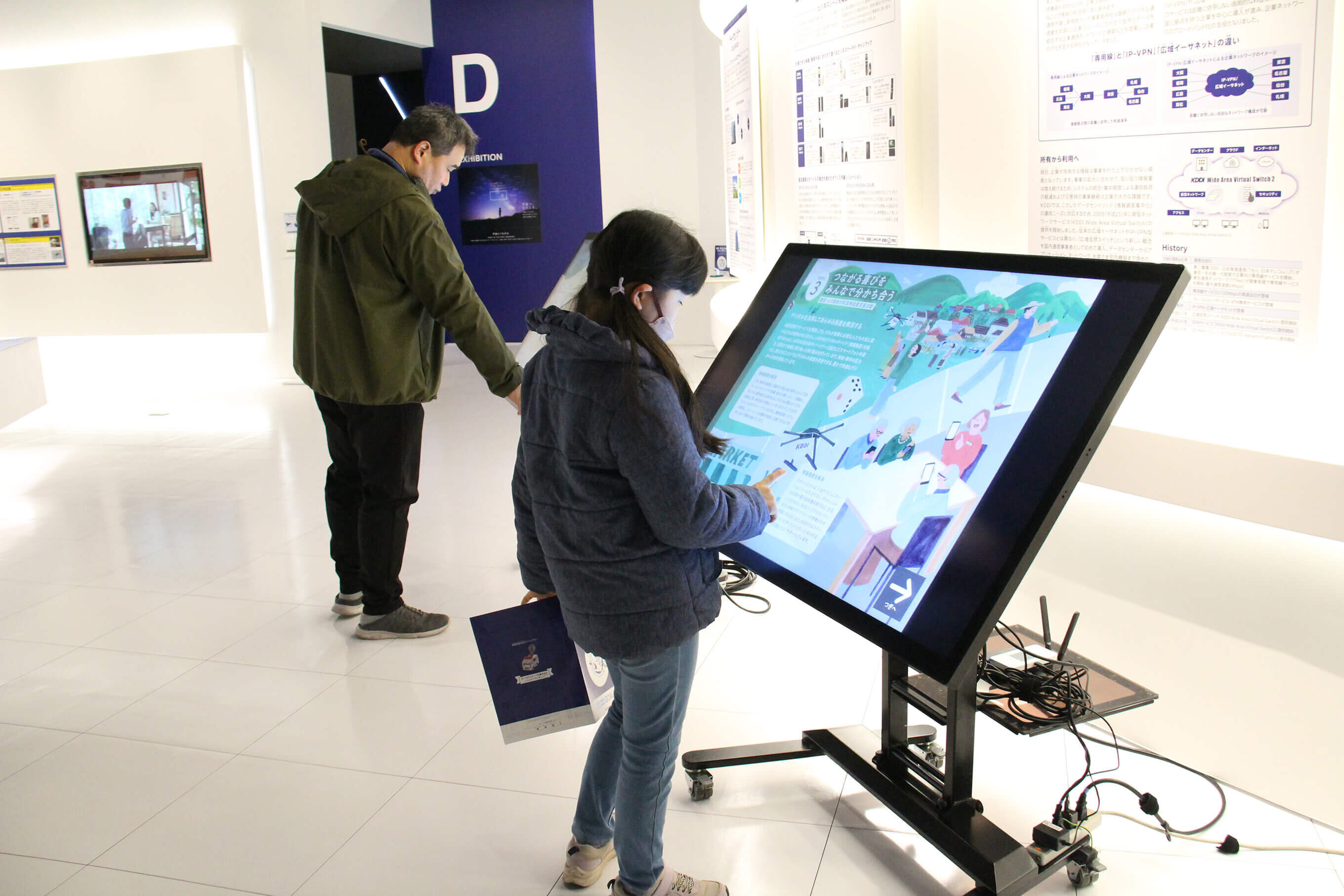 さらに、KDDI MUSEUMでは通信とSDGsについて学べるスタンプラリーを実施。ほかにもタッチモニターを使ってSDGsについて学べる特別コーナーを設けるなど、通信がSDGs達成に果たす役割について来館者の皆さまに理解を深めていただきました。