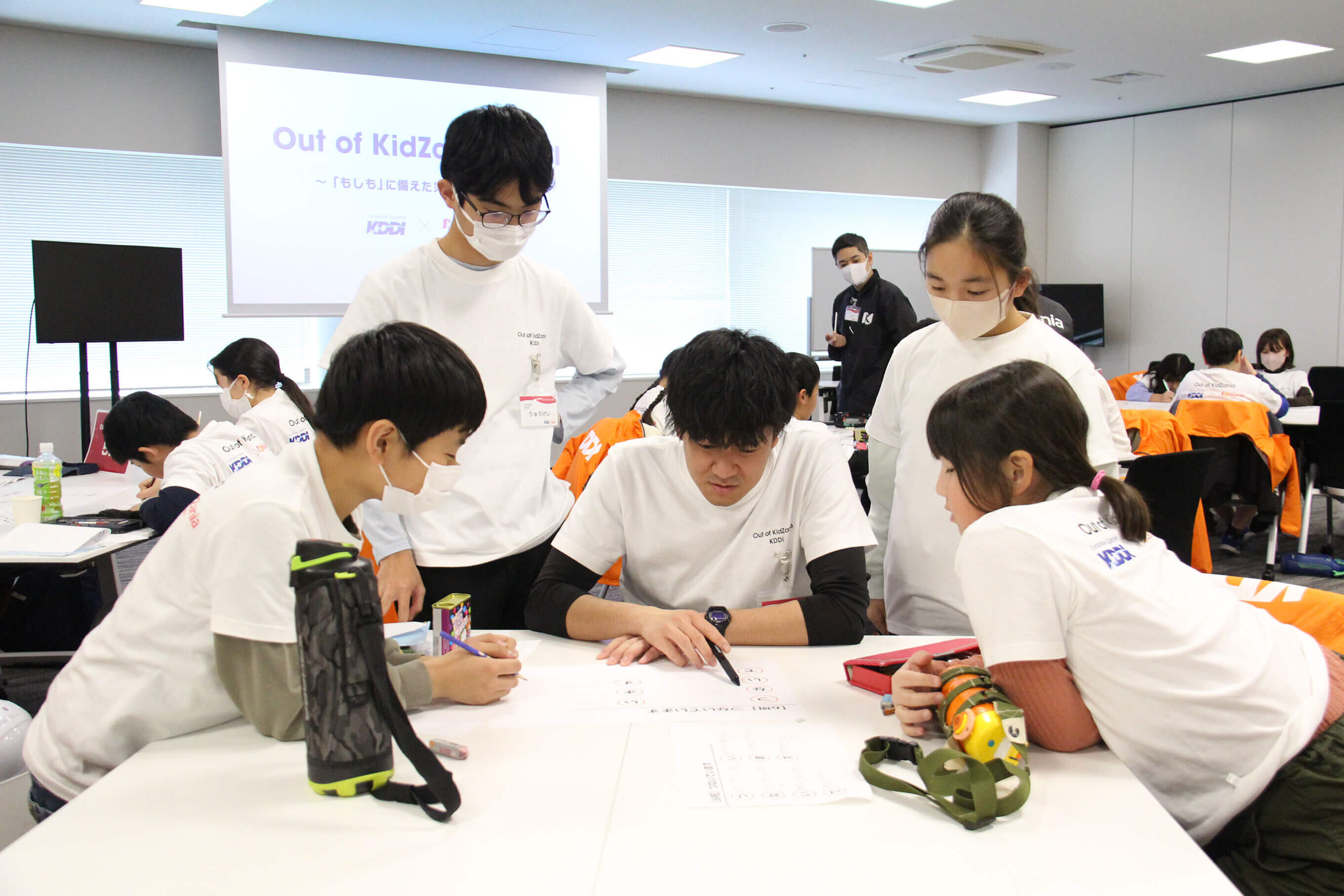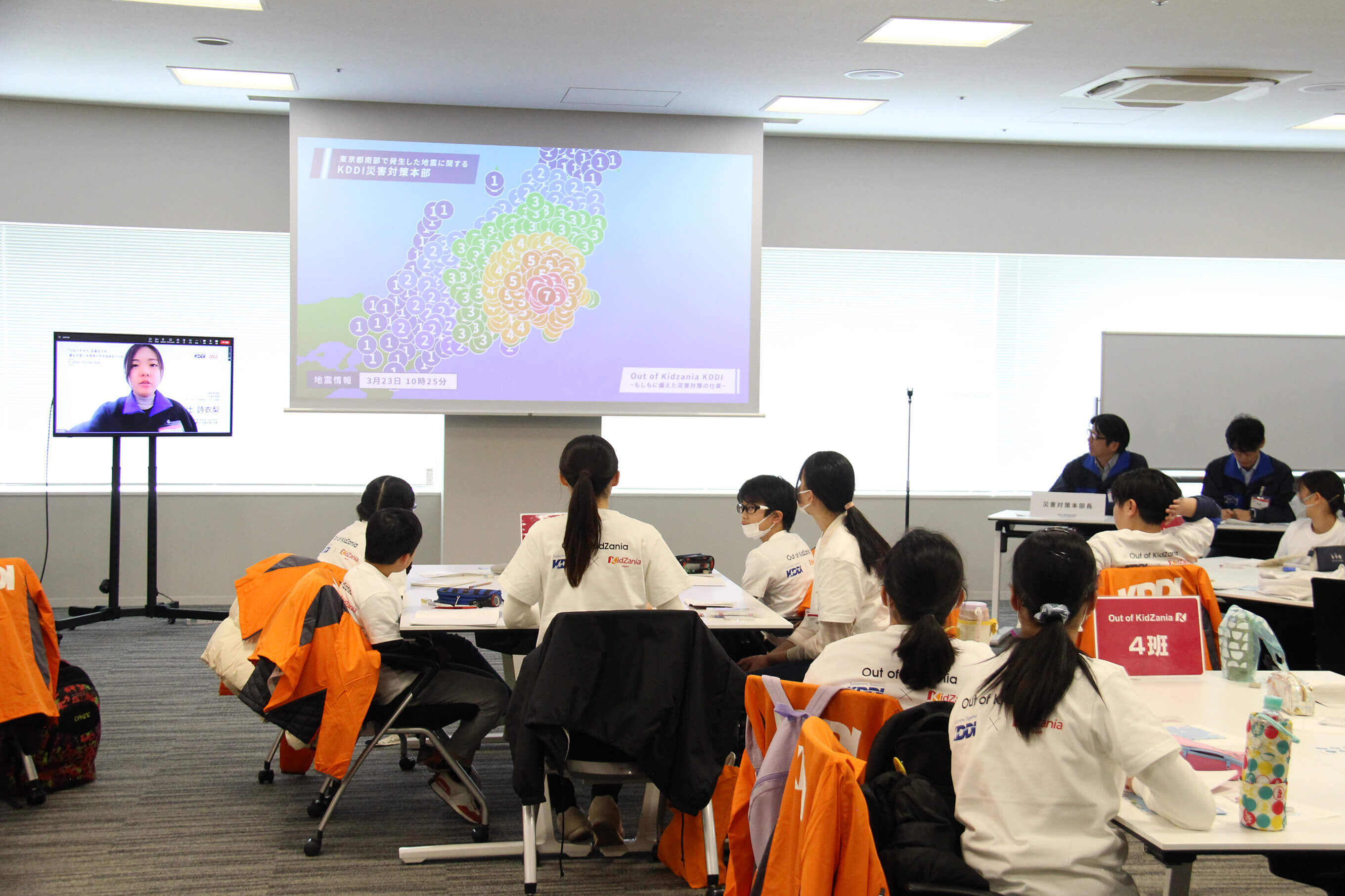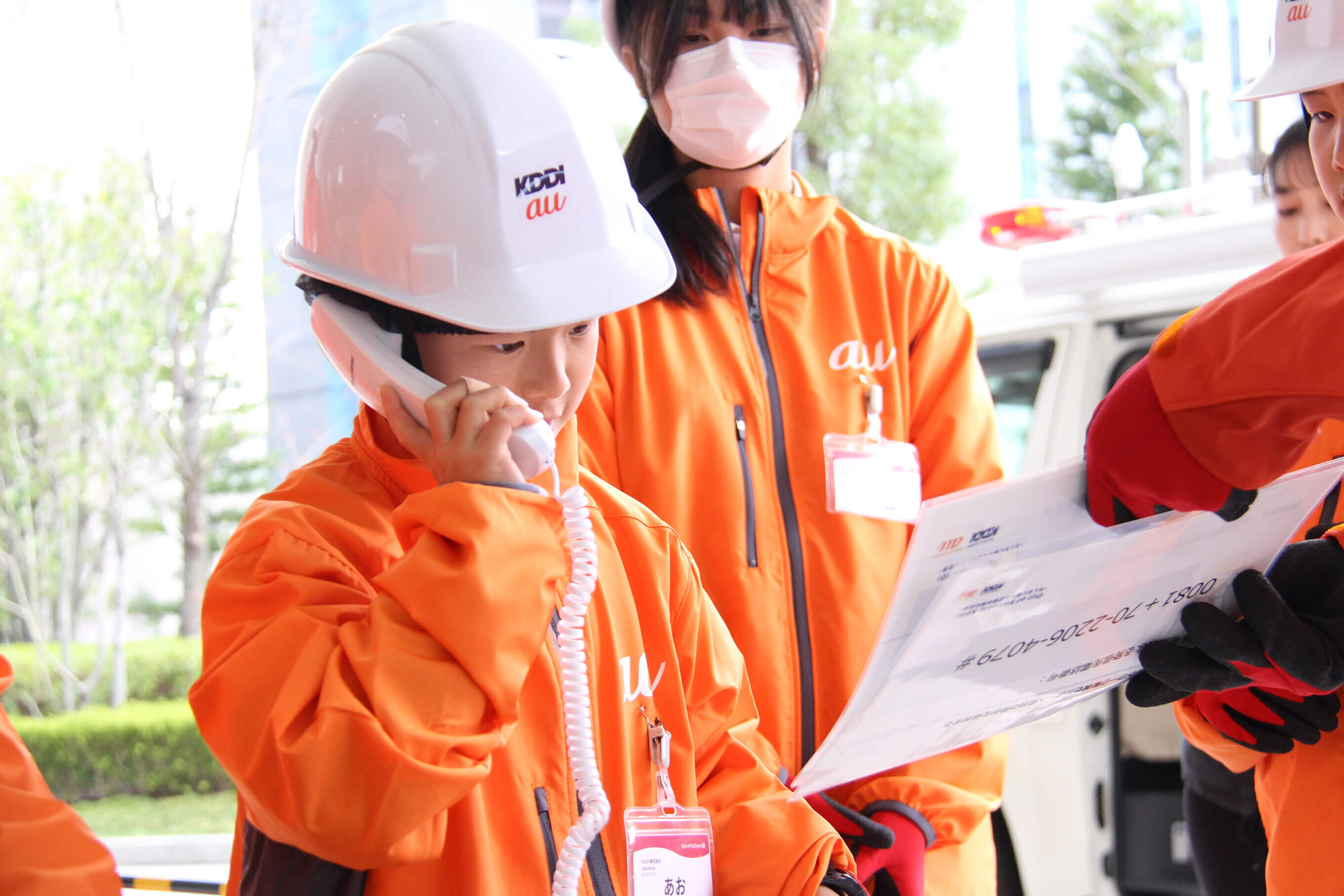 今回は『「もしも」に備えた災害対策の仕事』をテーマに、子どもたちに災害対策本部のスタッフとして通信を復旧させる疑似体験をしてもらい、通信が人々の「命・暮らし・心をつなぐ」重要な役割を担っていることを理解し、KDDIが果たす社会的な役割について知ってもらいました。