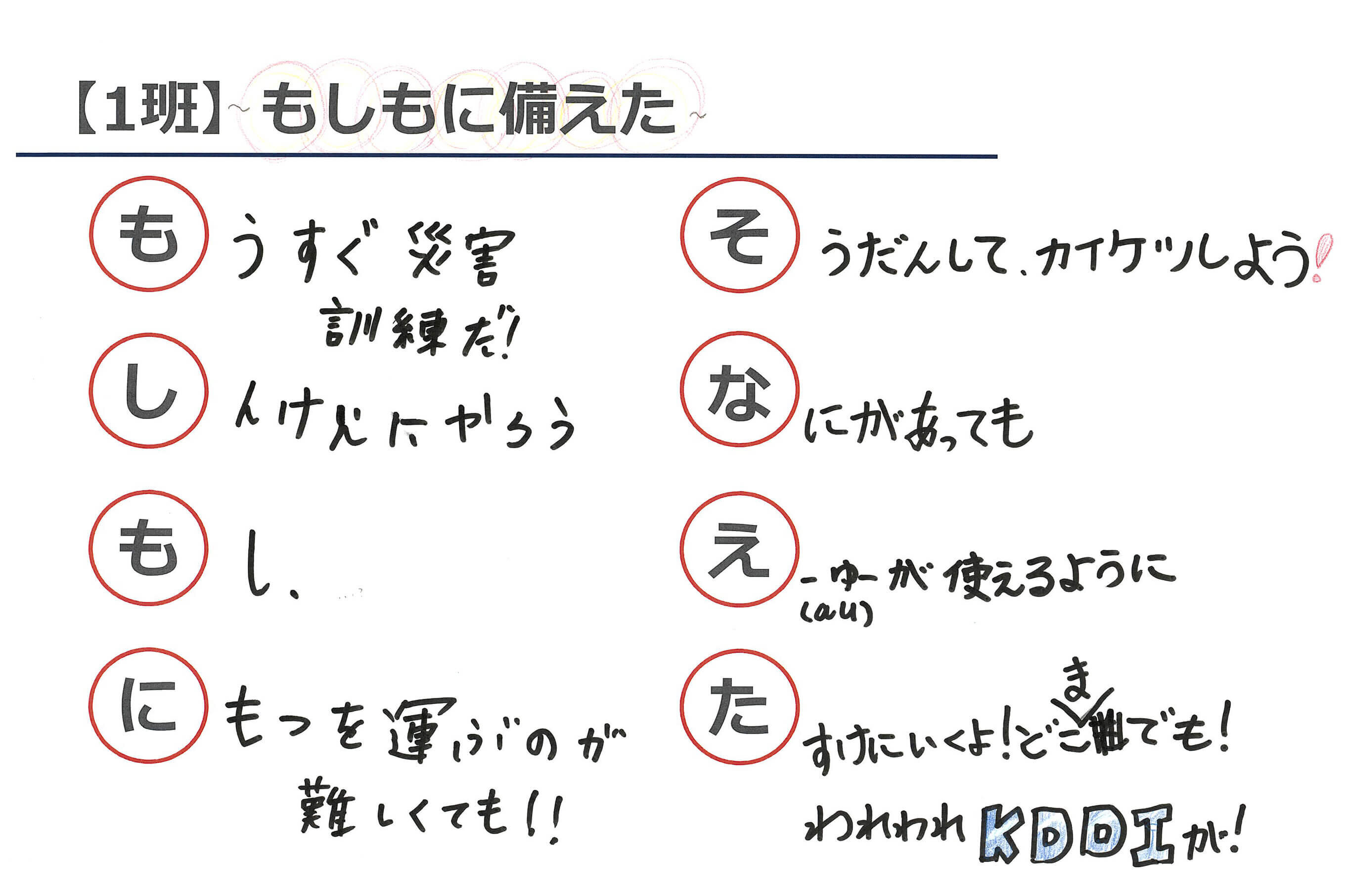 続けて座学では、KDDIがさまざまな手段で通信インフラを支えていること、「もしも」の時のKDDIの取り組み、通信が「命・暮らし・心をつなぐ」重要な役割を担っていることを学びました。