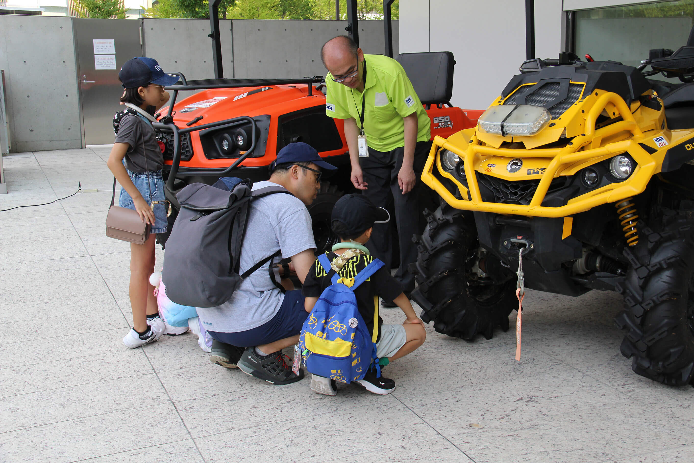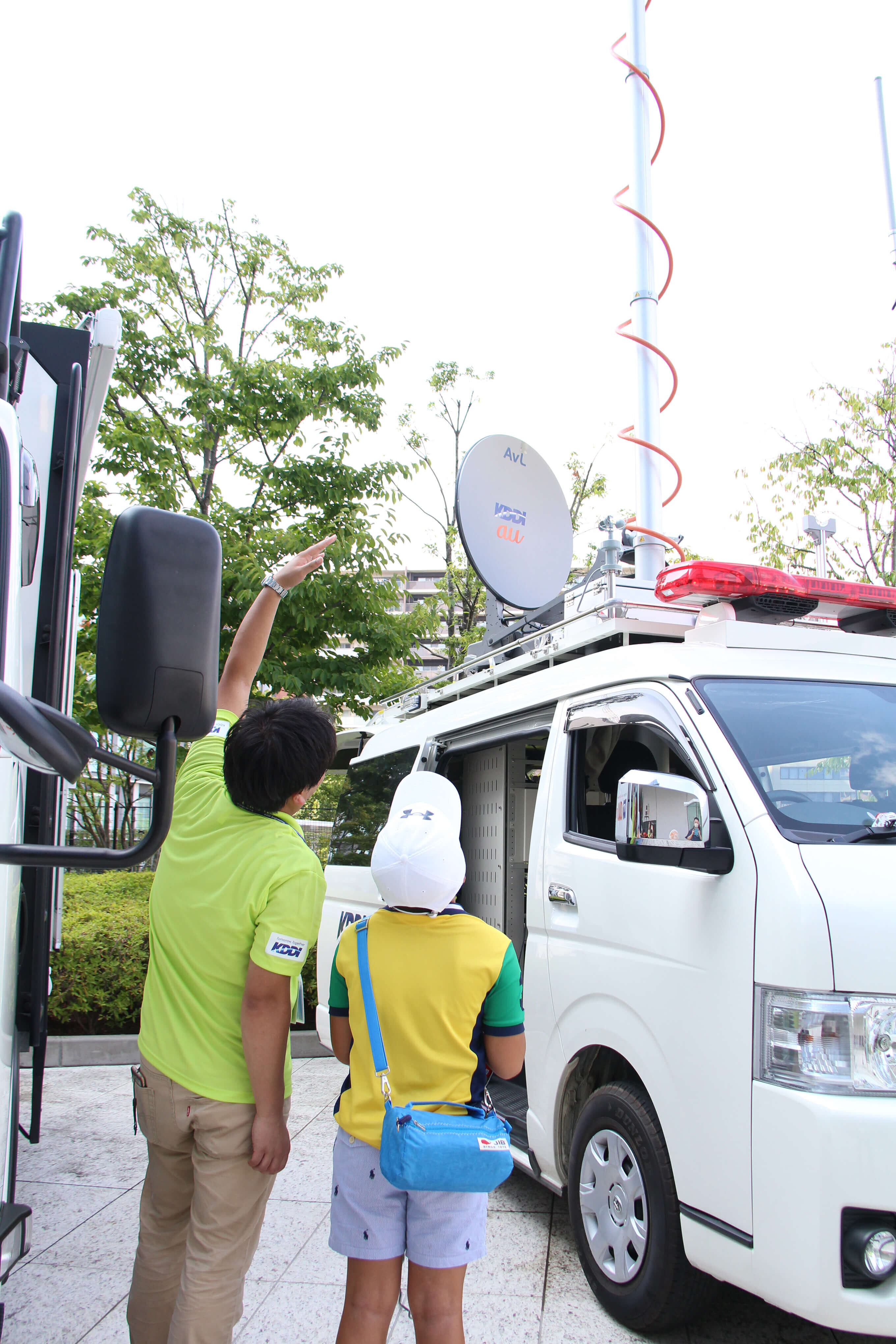 普段は見られない特別な車両をご覧いただくとともに、希望者には車載型基地局のサービスアンテナ立ち上げを、実際にコントローラーを操作して体験してもらいました。