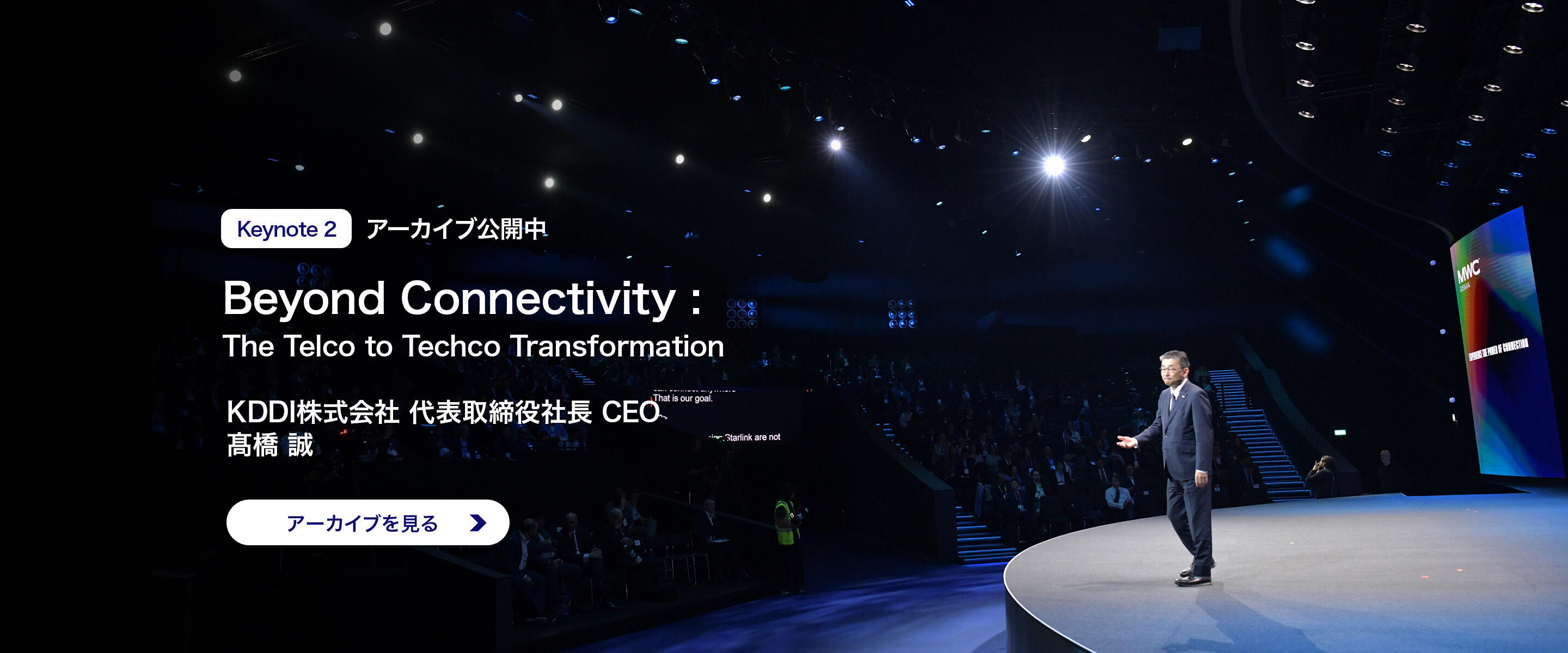 さまざまな技術の進化に伴い各国の通信事業者には、通信を超えたテクノロジーカンパニーへの転換が求められています。Keynote 2でのKDDIによるプレゼンテーションでは、5GとAIをコアに、非通信領域での先進的なビジネスモデルやパートナーシップなどLife Transformationの取り組みをご紹介します。