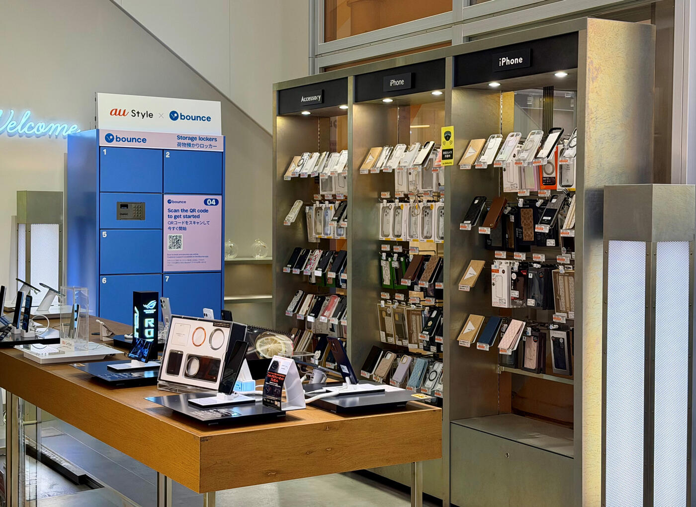 <KDDI直営店とBounce専用ロッカー>