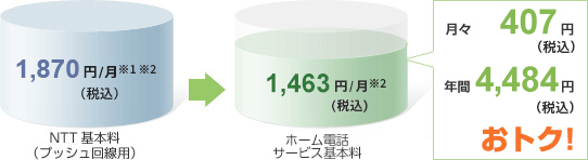 ホーム電話の月額基本料は全国一律1,463円(税込)(※2)。