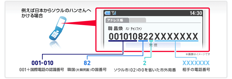 - 海外相手先電話番号が0で始まる場合、最初の0は省きます (一部例外もあります)。