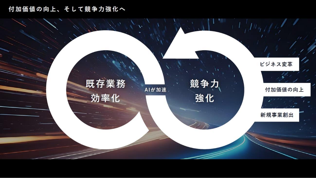KDDIグループは、フライウィールやELYZAをはじめとするグループの力を結集させ、法人のお客さまが、データ・AIを本当の意味で「活用」して業務や事業に生かせるようご支援を行い、“日本のデジタル化のスピードアップ”を目指していきます。